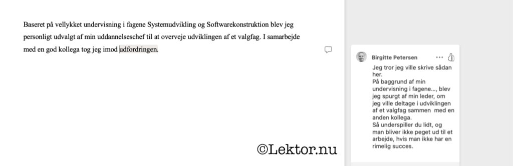 Sidst men ikke mindst skal det også beskrives i lektoranmodningen.